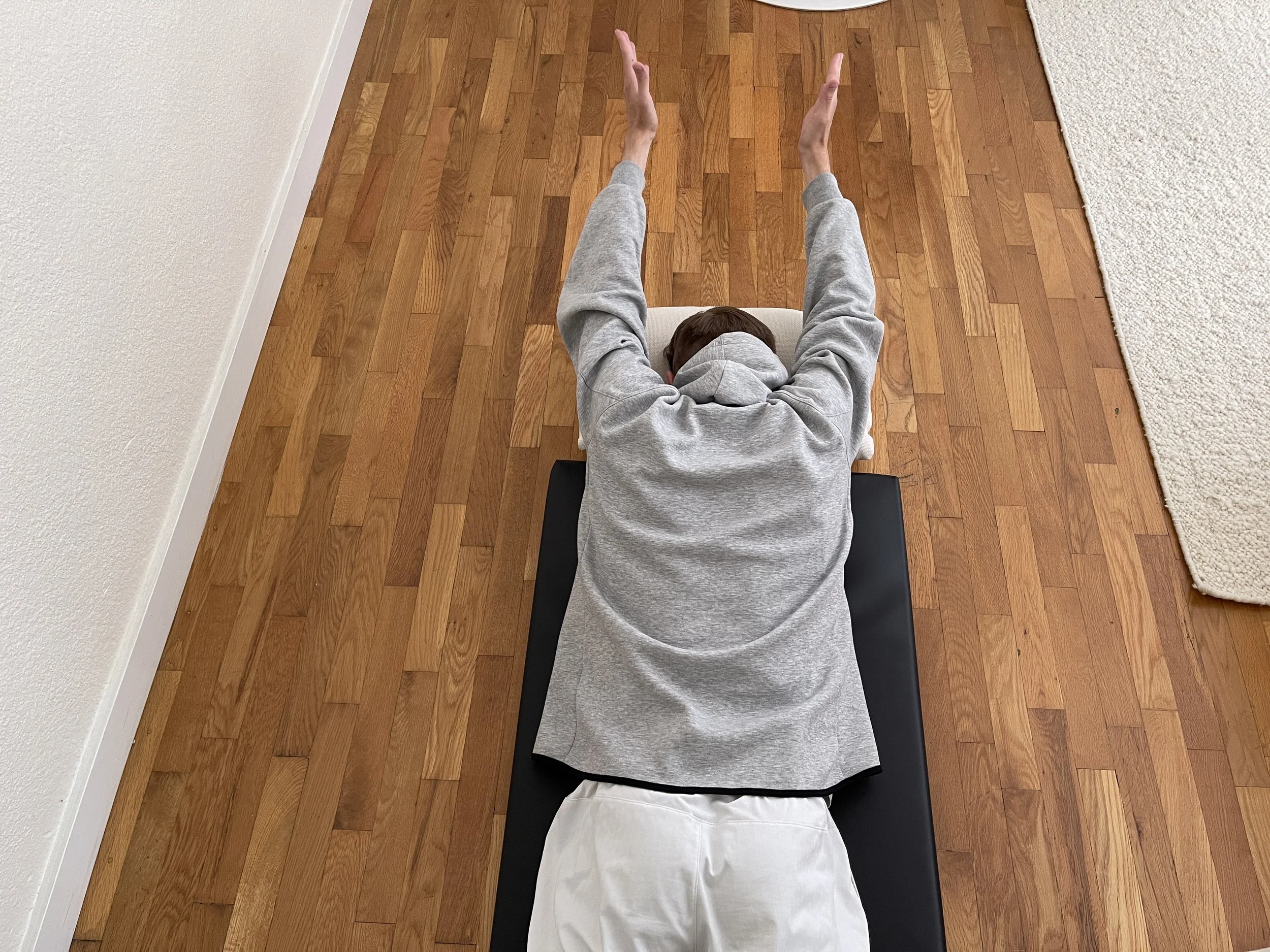 Alternate between I & Y positions with arms. Two second holds per position. Neck stays neutral on pillow.